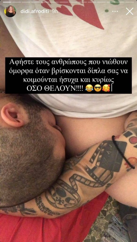 «Αφήστε τους ανθρώπους που νιώθουν όμορφα όταν βρίσκονται δίπλα σας να κοιμούνται ήσυχα και κυρίως όσο θέλουν», έγραψε χαρακτηριστικά η Αφροδίτη στη φωτογραφία που ανήρτησε μαζί του.