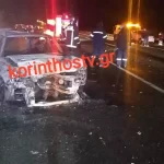 Στο ΙΧ εκδηλώθηκε φωτιά έπειτα από σύγκρουση, ενώ για τον απεγκλωβισμό του άτυχου επιβαίνοντα και την κατάσβεση (άνω φωτογραφία korinthostv.gr) επιχείρησαν δώδεκα πυροσβέστες με τέσσερα οχήματα.