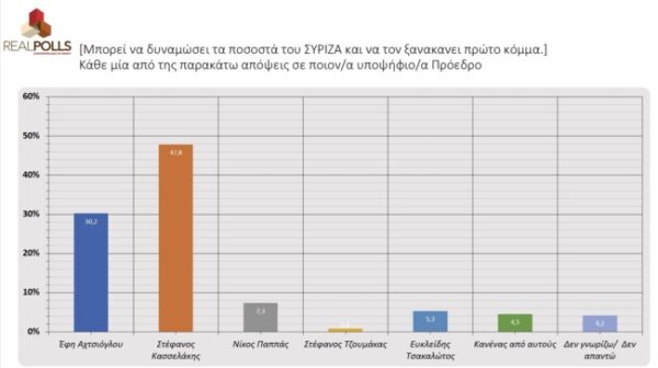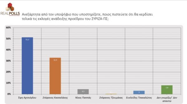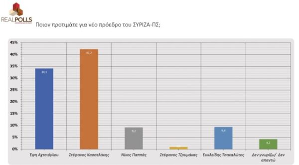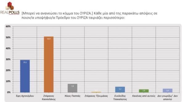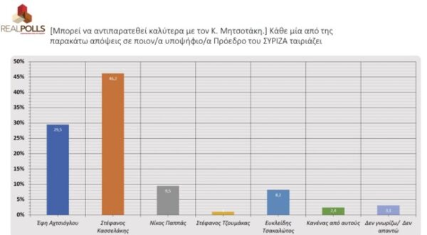 Δημοσκόπηση που διενεργήθηκε για τις επικείμενες εσωκομματικές εκλογές του ΣΥΡΙΖΑ από τη Real Poll, για λογαριασμό του militaire.gr, επεφύλασσε εκπλήξεις σχετικά με το ποιος υποψήφιος προηγείται στον β’ γύρο.