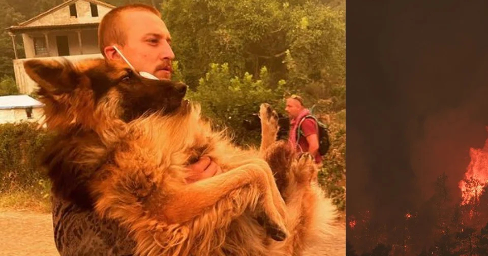 Το γύρο του διαδικτύου κάνει η φωτογραφία με τον εθελοντή στην Εύβοια που έσωσε από τις φλόγες ένα λυκόσκυλο. Η πύρινη λαίλαπα στην Εύβοια άφησε πίσω της πολλά καμμένα στρέμματα δάσους και πολλά κατεστραμένα σπίτια