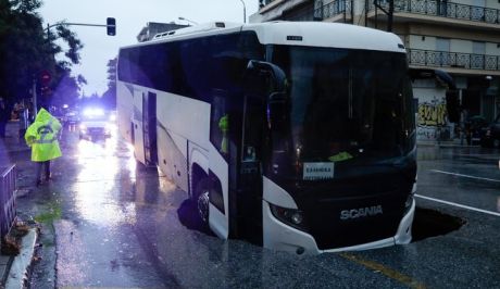 Στιγμές αγωνίας έζησαν 15 επιβάτες-εργαζόμενοι των Ελληνικών Πετρελαίων, όταν τμήμα του οδοστρώματος στην οδό Εθνικής Ανιστάσεως στην Καλαμαριά υποχώρησε, με αποτέλεσμα να πέσει μέσα το λεωφορείο στο οποίο επέβαιναν.