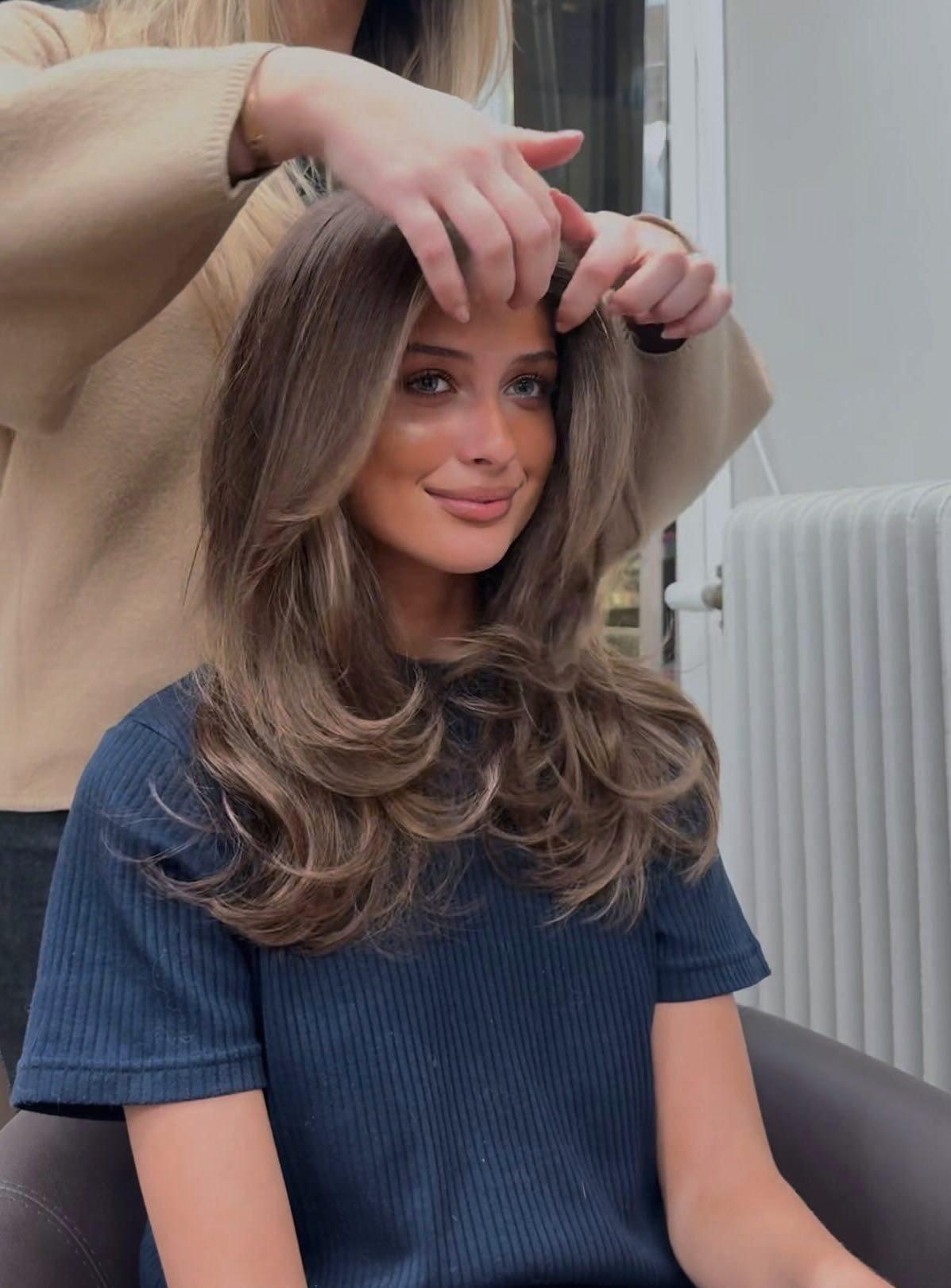 Το κούρεμα συνήθως διατηρεί το μήκος άθικτο, ενώ παράλληλα αφαιρεί το βάρος στρατηγικά. Γύρω από το πρόσωπο, διακριτικά τμήματα που πλαισιώνουν προσθέτουν διάσταση χωρίς έντονες γραμμές. Συνδυάζεται υπέροχα με φυσικά waves, χαλαρές μπούκλες ή ίσιες υφές, επειδή ενισχύει την κίνηση αντί να επιβάλλει τη δομή.
