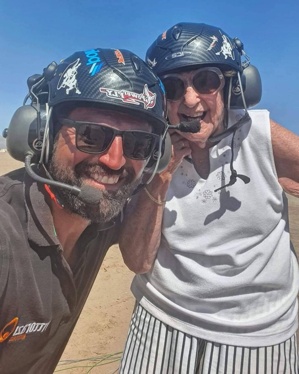 Μάλιστα η 94χρονη είπε στον έμπειρο εκπαιδευτή ο οποίος τη βοήθησε να περπατήσει μέχρι το σημείο της απογείωσης, ότι είναι gentleman!