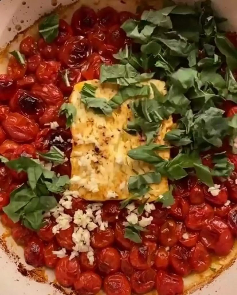 Η συνταγή είναι πραγματικά πολύ απλή: Ένα κομμάτι φέτα, λίγο ελαιόλαδο και μερικά ντοματίνια ψήνονται στο φούρνο μέχρι να μαλακώσουν και στη συνέχεια ανακατεύονται με βρασμένα ζυμαρικά και φρέσκο βασιλικό.