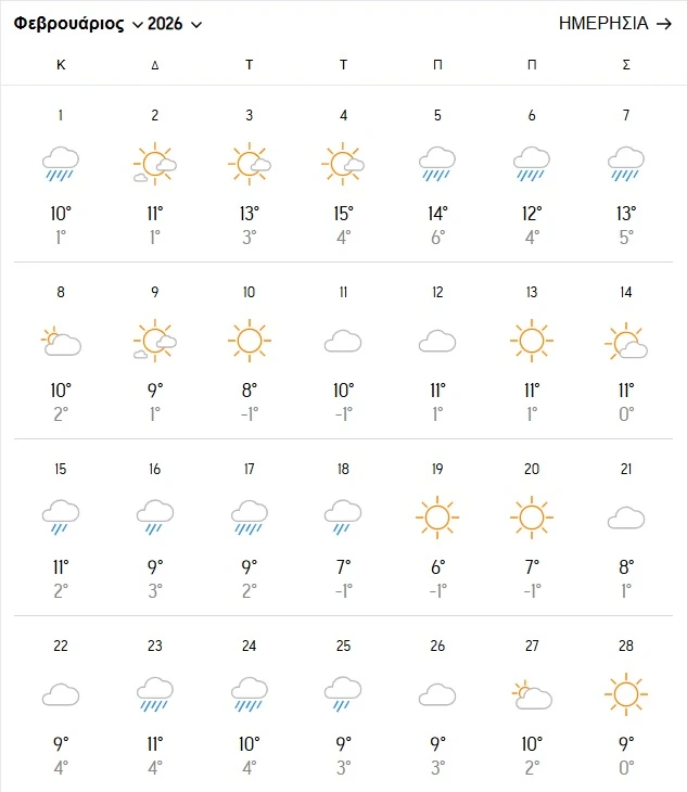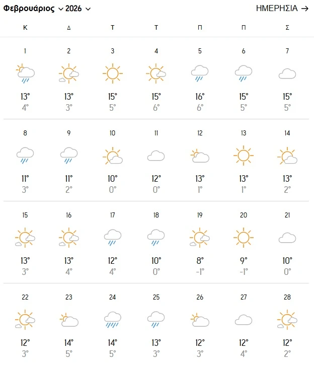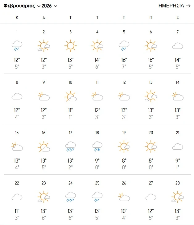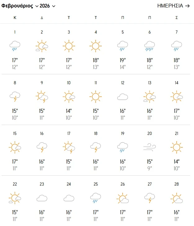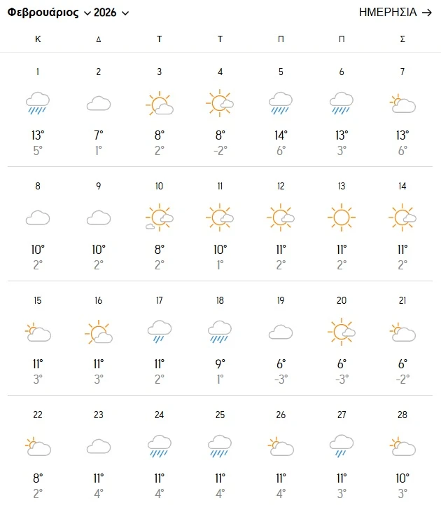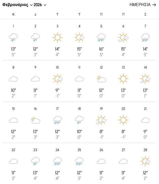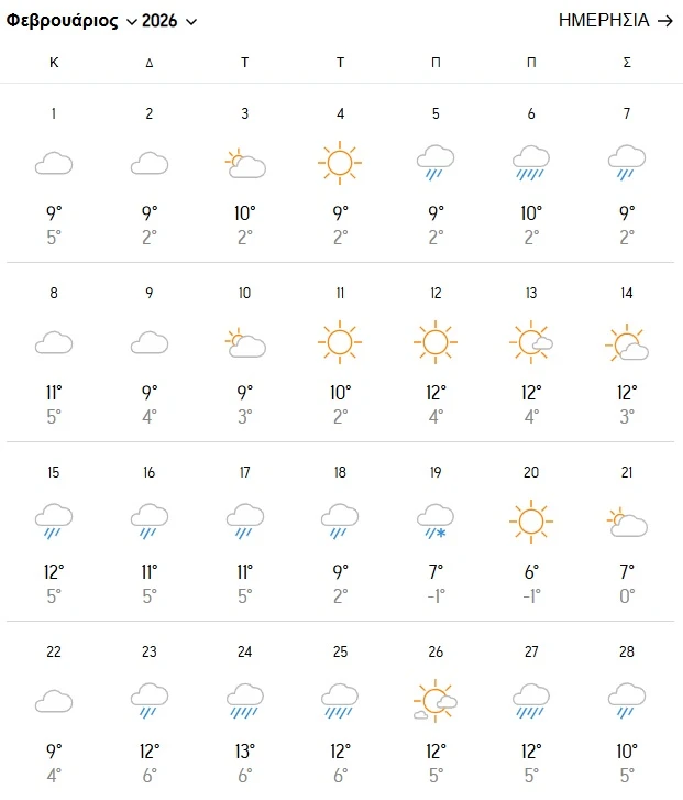 Ας δούμε, με τη βοήθεια της ιστοσελίδας μετεωρολογικής πρόγνωσης accuweather τι καιρό θα κάνει σε 13 πόλεις και περιοχές της χώρας την Τσικνοπέμπτη 12 Φεβρουαρίου 2026: