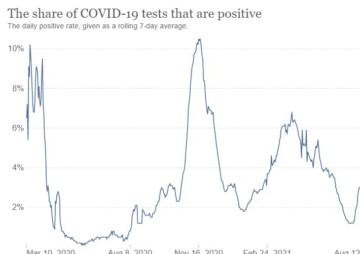 Ακολουθούν δύο σχεδόν όμοια διαγράμματα από το Our World in Data. Φαίνεται ότι στην πατρίδα μας , με εξαίρεση το πρώτο κύμα του Μαρτίου 2020 που η θετικότητα των τεστ έφθασε το 10% και δεν συνοδεύθηκε από θανάτους , λόγω της αυστηρής καραντίνας, στο δεύτερο ισχυρότερο του Νοεμβρίου και στο τρίτο ηπιότερο του Μαρτίου 2021 οι θάνατοι ανά εκατομμύριο πληθυσμού ήταν ανάλογοι με το δείκτη θετικότητας. Το κύμα του Νοεμβρίου ήταν περισσότερο οξύ και με μικρότερη διάρκεια , ακολούθησε το κύμα του Μαρτίου με μικρότερη ένταση αλλά μεγαλύτερη διάρκεια. Ανάλογα εξελίσσεται και η πανδημία τις τελευταίες εβδομάδες με τη διαφορά ότι οι δείκτες θετικότητας ευτυχώς δεν συνοδεύονται από αύξηση των θανάτων. Αυτό αποδίδεται στην αύξηση της εμβολιαστικής κάλυψης και στην ανοσία που αποκτήθηκε από προηγούμενη νόσο σε μέρος του πληθυσμού . Επομένως στο δρόμο για την εξασθένηση της πανδημίας , αναμένεται να συναντήσουμε όλο και ηπιότερα κύματα. Εξαίρεση ίσως αποτελέσουν περιφέρειες , χωρίς μεγάλο μέχρι τώρα πανδημικό κύμα και με λιγότερους εμβολιασμένους, όπως η Κρήτη»