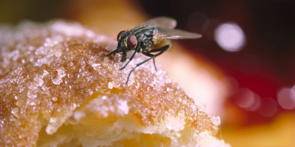Αν μια μύγα καθίσει στο φαγητό τη στιγμή που το τρως, εξηγεί ο επιστήμονας, «δεν υπάρχει σοβαρός κίνδυνος, γιατί το φαγητό είναι ζεστό και τα μικρόβια δεν προλαβαίνουν να αναπτυχθούν». Αν όμως το φαγητό παραμείνει εκτεθειμένο, ειδικά σε θερμό περιβάλλον, τότε τα μικρόβια μπορεί να πολλαπλασιαστούν και να παράγουν τοξίνες.