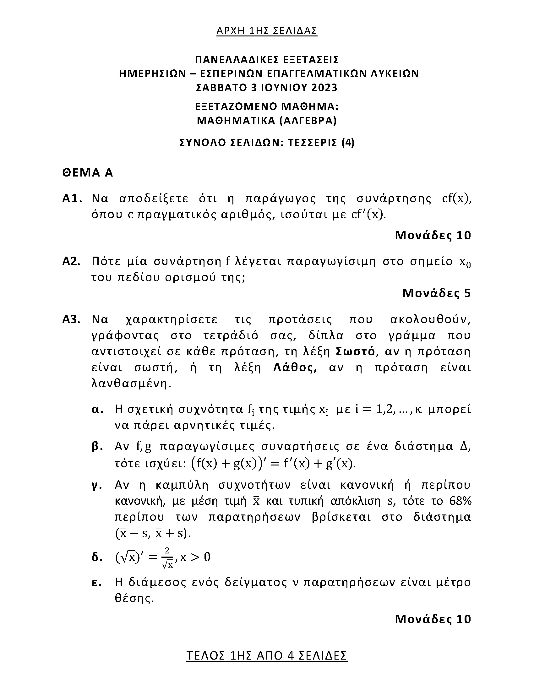 Αυτά είναι τα θέματα της Άλγεβρας: