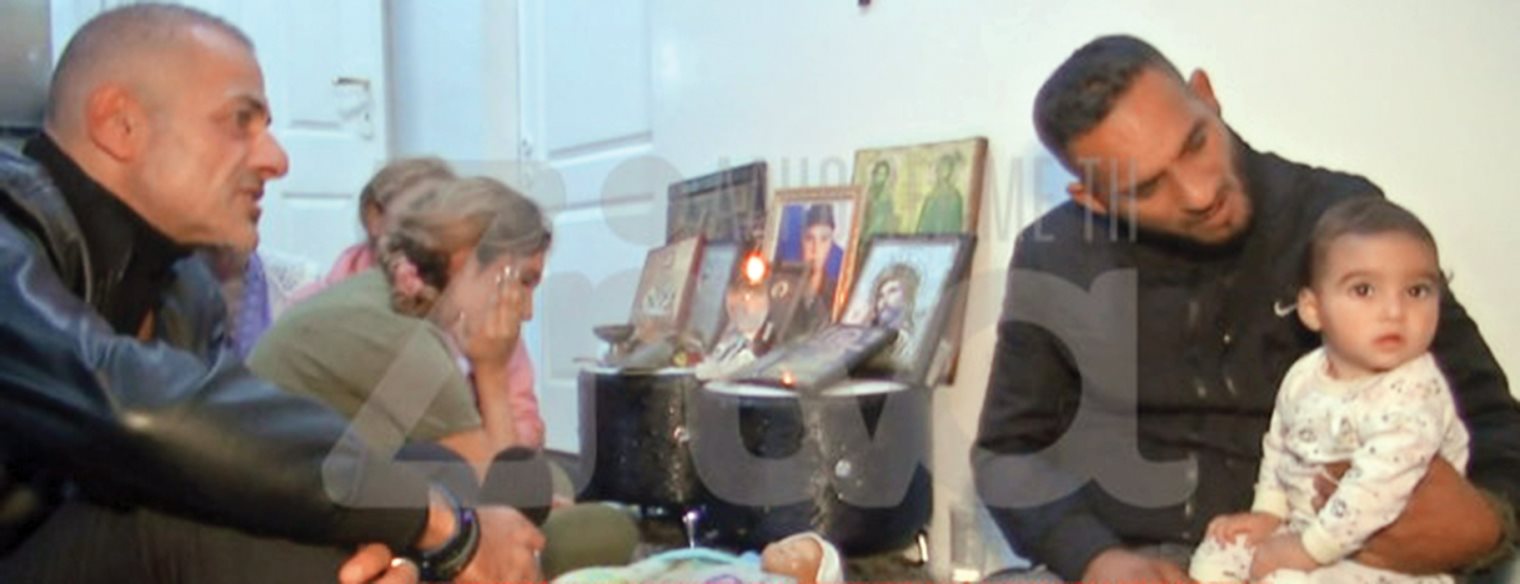 Το κλίμα είναι βαρύ ενώ η εικόνα του 1,5 έτους μωρού του νεαρού ζευγαριού, που βρίσκεται στην αγκαλιά του παππού του και τη γυναίκα του να μην φεύγει μπροστά από τα εικονίσματα και το καντήλι της, συγκλονίζει.