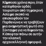 Κι έπεφταν πάνω σε αυτήν την κλασσική αρχαιοελληνική ομορφιά», έγραψε χαρακτηριστικά και ανέβασε παρακάτω φωτογραφία.