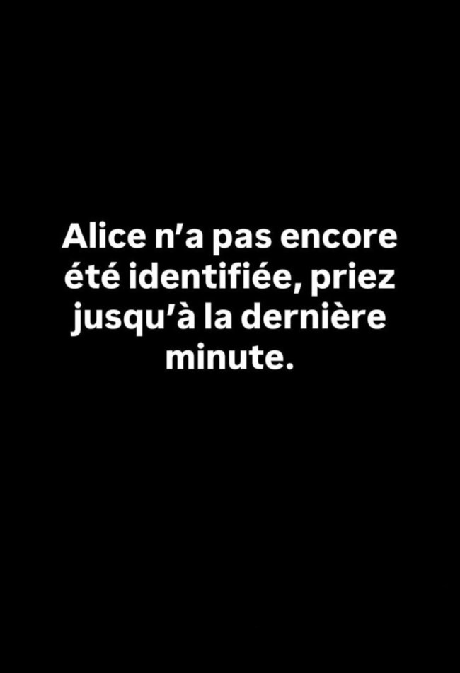 Λίγο αργότερα, ο αδελφός της Ρομέν Καλλέργης, προχώρησε σε ένα story στο Instagram, με το οποίο διέψευσε την ταυτοποίηση της σορού της Αλίκης και ζήτησε από όλους να προσευχηθούν για την αδερφή του μέχρι την τελευταία στιγμή.