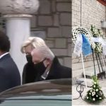 Ο Γρηγόρης Πετράκος, συντρετριμμένος στην κηδεία του Γιώργου Τράγκα. Υπενθυμίζεται ότι τον αποχαιρέτησε με μία συγκινητική ανάρτηση, γράφοντας μεταξύ άλλων: “Ήσουν ο πιο ζωντανός άνθρωπος που έχω γνωρίσει. Το βλέμμα σου πιο οξύ κι από ξυράφι. Όσα έμαθα από σένα σε λίγους μήνες θα χρειαζόμουν πολλές ζωές να τα βρω μόνος μου”.